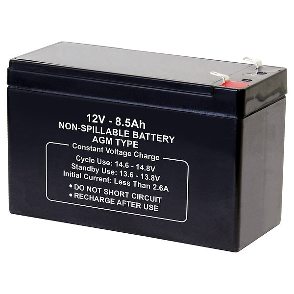 Sealed Lead Acid Battery, Battery Design AGM, Voltage - Batteries 12V DC, Capacity - Batteries 8.5 Ah, Terminal Type - Batteries Faston, Height 3.78 in, Width 5.94 in, Depth 2.56 in, Housing Material - Batteries ABS, Battery Cycle Type Deep Cycle, Terminal Location Top, Application Consumer Electronics, Electric Vehicles, Emergency Lighting, Golf Carts, Hunting, Lawn and Garden, Medical Mobility, Motorcycles, Portable Tools, Powersports, Security, Solar, Toys, For Use With All Purpose