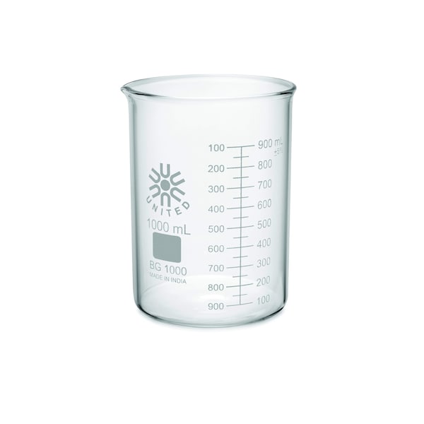 Beaker, Borosilicate Glass, Low Form, 1 L / 33.81 fl oz Capacity, A Type I, 6 PK