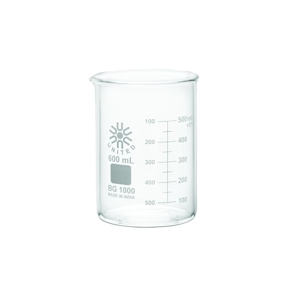 Beaker, Borosilicate Glass, Low Form, 600 mL / 20.2 fl oz Capacity, A Type I, 6 PK