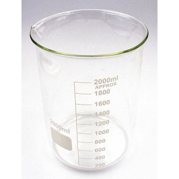 Beaker, Capacity - Metric 2 L, Capacity - English 67.6 fl oz, Product Type Beaker, Beaker Type Low Form, Outside Diameter - Metric 132 mm, Overall Height - Metric 185 mm, Body Material Glass, Includes Graduations Yes, Glassware Class Not Rated, Body Color None, Graduation Increments - Metric 200 mL, Autoclavable Yes, USP Specification Not Applicable, Clarity Transparent, Basic Material Glass, Special Features Pour Spout, Disposable/Reusable Reusable, Sterile/Non-Sterile Non-Sterile