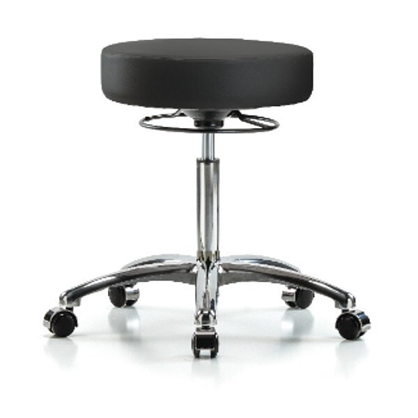 Bench Stool, Med, Chrom, Vinyl, Castrs, BLK