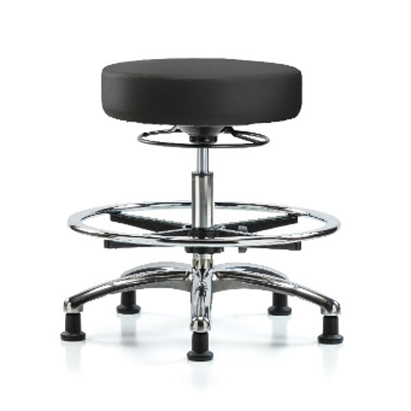 Bench Stool, Med, Vin, Chrm, CF, Glides, BLK