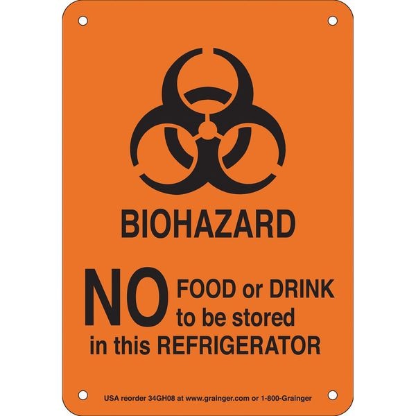 Biohazard Sign, 7 in Height, 10 in Width, Aluminum, English