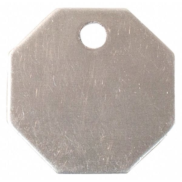Blank Tag, Aluminum, 1 1/4 in H x 1 1/4 in W, Silver, Octagon, 25 PK