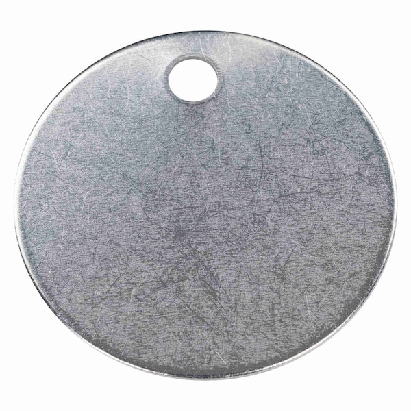 Blank Tag, Stainless Steel, 1 1/2 in H x 1 1/2 in W, Silver, Round, 25 PK