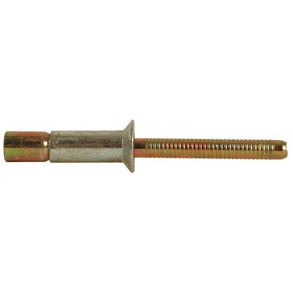 Blind Rivet, Countersunk Head, 1/4 in Dia., 11/16 in L, Steel Body, 100 PK