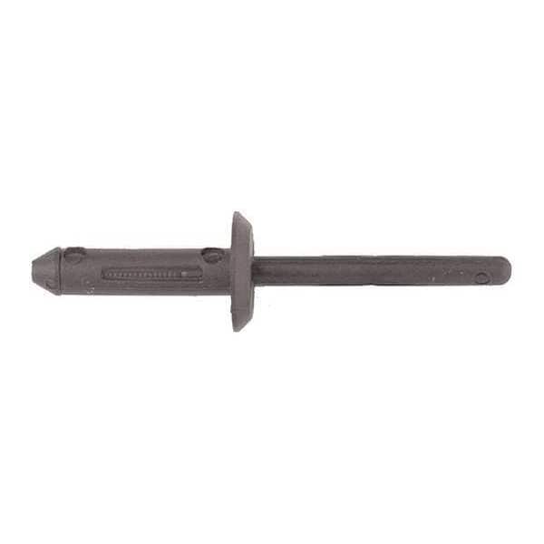 Blind Rivet,13/64 in dia,PK25, System of Measurement Inch, Body Length 13/16 in, Shank Diameter 0.2031 in, Product Type Blind Rivet, Body Material Nylon, Head Type Dome, Head Diameter 15/32 in, Maximum Hole Diameter 0.2031 in, Minimum Material Thickness 1/8 in, Maximum Material Thickness 15/64 in, Material Grade/Class Ungraded, Mandrel Material Nylon, Color Black, Package Quantity 25