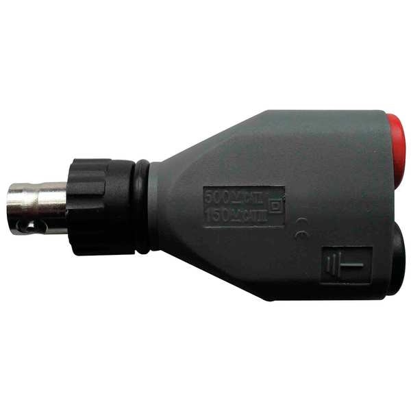 BNC Adapter, BNC Female To Banana Jacks, Voltage Rating CAT I 500V, CAT III 150V, Body Material Nylon 66, Contact Material Nickel Plated Brass Center Contact, Insulation Type Double, Operating Temp. +50 Degrees C Max