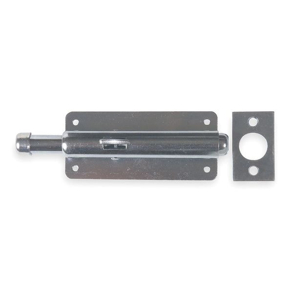 Door Bolt, Operation Type Foot Pull, Zinc Finish, Material Zinc, Length 6 in, Width 2 1/4 in, Height 1 in, Bolt Length 6 in, Bolt Head Dia. 3/4 in, Throw Size 7/8 in, Chain Length Not Applicable, Hardware Included