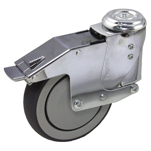 Bolt-Hole Caster, 1/2 in Bolt Hole Dia., 1/2 in Mounting Bolt Dia., Steel Caster Frame Material, Chrome Plated Frame Finish, 0 to 299 lb Load Rating Range, 190 lb Load Rating, 1 Number of Wheels, Ball, 5 3/10 in Mounting Height, 4 in Wheel Dia., 1 1/4 in Wheel Width, Rubber Wheel/Tread Material, 90 Shore A Wheel/Tread Hardness, Firm, Yes Non-Marking