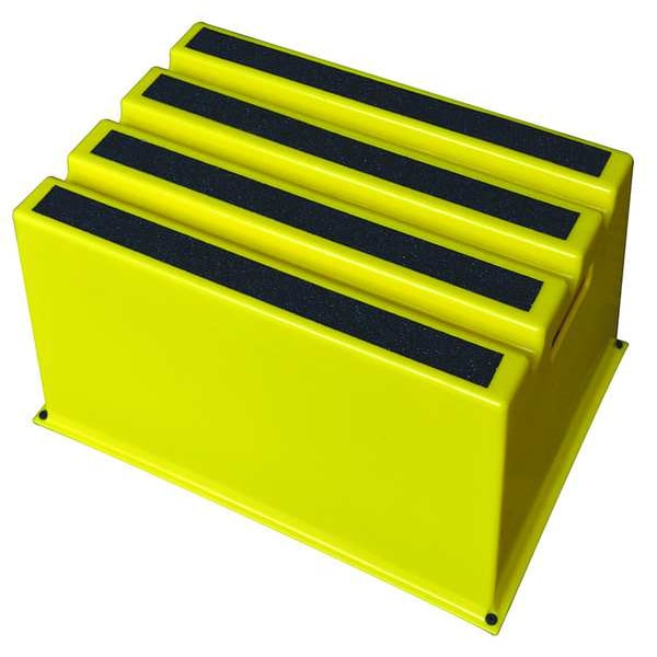Step Stool Product Group Box Step, Number of Steps 1, Overall Height 12 in, Material Plastic, Load Capacity 500 lb, Top Step Height 12 in, Top Step Depth 12 in, Bottom Width 20 3/4 in, Base Depth 14 3/4 in, Color Yellow, Finish Not Applicable, Series Not Applicable, Closed Depth Not Applicable, Includes (4) Spare Foot Pads, Standards Not Applicable, Net Weight 7.38 lb, Step Width 24.3 in, Nestable Yes