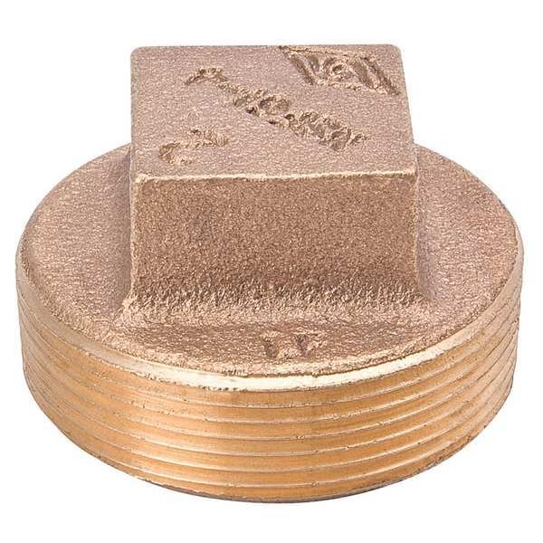 Square Head Plug, 1 1/2 in Nominal Pipe Size, Brass, Class 125, Male NPT, 1 1/2 in Outside Diameter, 200 psi Maximum Operating Pressure, -20 Degrees to 400 Degrees F, Includes Pre-Applied Thread Sealant No, Includes Seal No, Red Brass