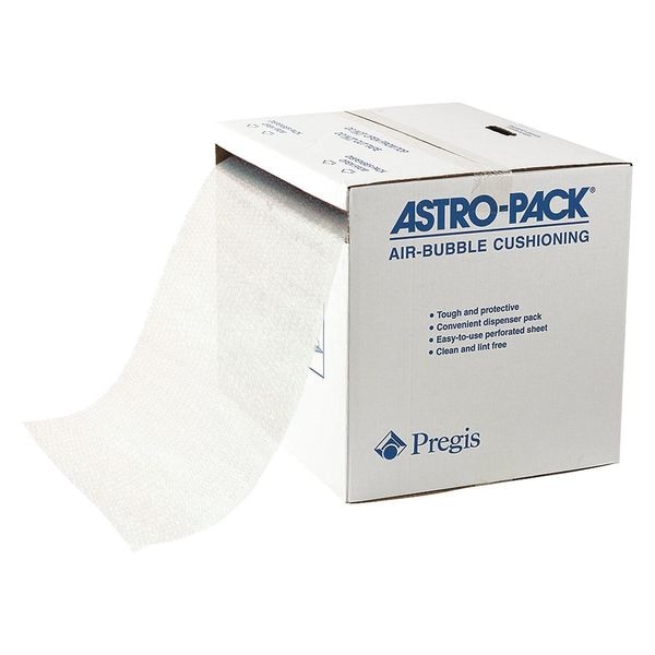 Bubble Dispensing Box, Bubble Roll Type Parcel-Ready, Perforation Perforated, Bubble Size 1/2 in, Roll Width 24 in, Roll Length 50 ft, Color Clear, Box Width 20 in, Box Depth 25 in, Box Height 19 in, Perforation Increments 12 in