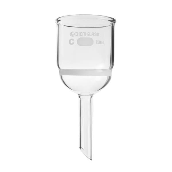Buchner Funnel, Basic Material Glass, Funnel Top Inside Diameter - Metric 34 mm, Capacity - English 1.01 fl oz, Laboratory Funnel Type Buchner, Body Material Glass, Funnel Material Glass, Autoclavable Yes, Body Color Clear, USP Specification Type I, Product Type Separatory Funnel, For Use With Useful wherever filter paper or membranes cannot withstand the chemical attack of the filtrate., Stem Length - Metric 40 mm, Capacity - Metric 30 mL, Stem Outside Diameter - Metric 8 mm