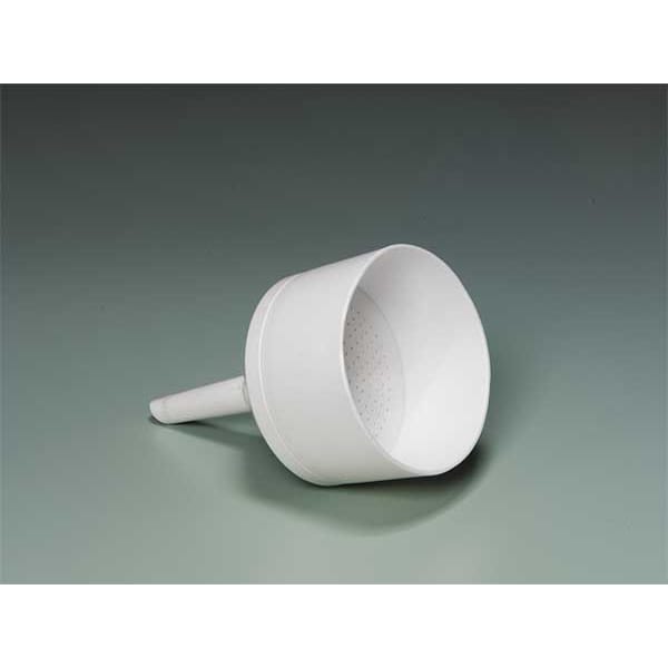 These polypropylene 2-piece funnels are light-weight, easy to clean and autoclavable. The top portion snaps into the lower one, forming a vacuum seal that does not require greasing. The base of the top portion has a perforated filter plate.