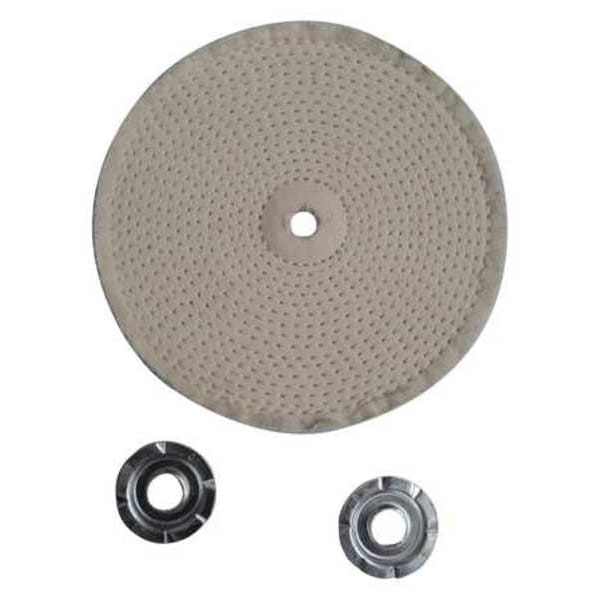 Buffing Wheel, Sew Style Spiral, Buffing Material Cotton, Overall Dia. 6 in, Overall Thickness 3/8 in, Connector Size 1 in, Number of Plies 30, Primary Material Application Aluminum, Brass, Bronze, Cast Iron, Composite, Copper, Ferrous Metal, Glass, Masonry, Natural Stone, Nickel Alloy, Stainless Steel, Steel, Tool Steel, Reducer Bushing Size 1/2 in, Operating Speed - Maximum Not Applicable, Abrasive Material Not Applicable, Compatible Tool Type Buffing Machine, Connector Type Unthreaded Hole