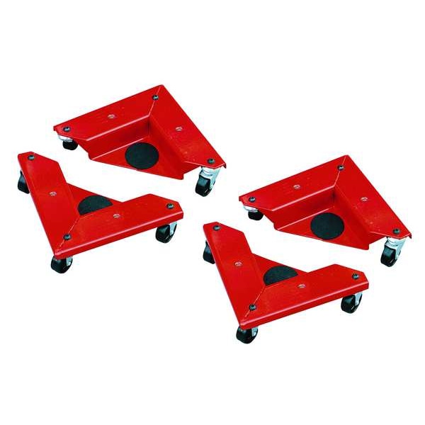 Leg, Edge, & Corner Mount Desk & Furniture Dolly, Load Capacity 1,320 lb, Platform Depth 2 1/2 in, Platform Width 10 1/4 in, Caster Wheel Dia. 2 in, Color Red, Frame Material Steel, Non-Marking Casters/Wheels Yes, Non-Marking Axle-Mounted Wheels Yes, Platform Type Solid, Platform Height 3 1/2 in, Axle-Mounted Wheel Dia. 2 in, Axle-Mounted Wheel Type Solid, Axle-Mounted Wheel/Tread Material Rubber, Caster/Wheel Configuration (12) Swivel, Package Quantity 4