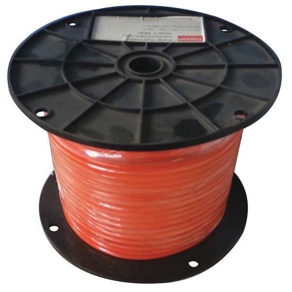 Wire Rope, Material Galvanized Steel, Core Type IWRC, Working Load Limit 340 lb, Breaking Strength 1,700 lbf, Rope Strand Classification 7 x 7, Cable Diameter 1/8 in, Overall Diameter 1/4 in, Overall Length 500 ft, Bend Radius Not Applicable, End Type Plain, Lubrication Unlubricated, Color Orange, Lifting Capability For Lifting, Coating Coated, Coating Type Vinyl, Minimum Operating Temperature Not Applicable, Maximum Operating Temperature Not Applicable