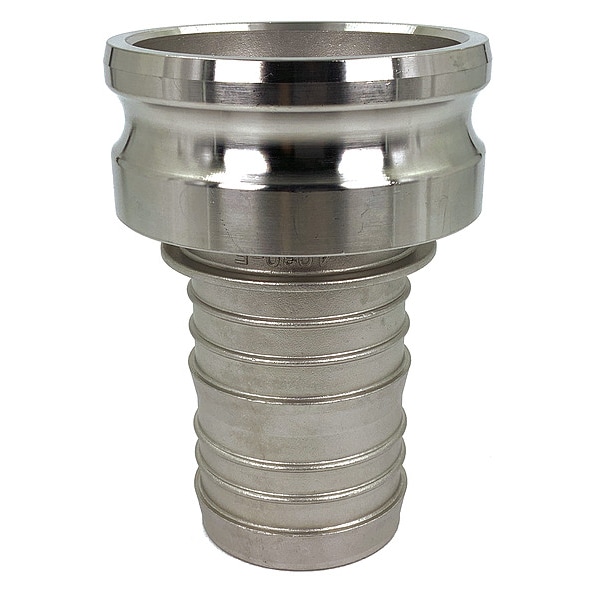 Cam and Groove Adapter, Plug, Body Material 316 Stainless Steel, Type E, Coupling Size 4 in, For Hose I.D. 3 in, Male, Connection Type Hose Shank, Hose Fitting Size 3 in, Male Hose Shank, Max. Working Pressure @ 70 F 100 psi, Plug Outside Dia. 4 45/64 in, Overall Length 6 11/16 in, Includes Locking Arm No, Plug Length 2 5/64 in