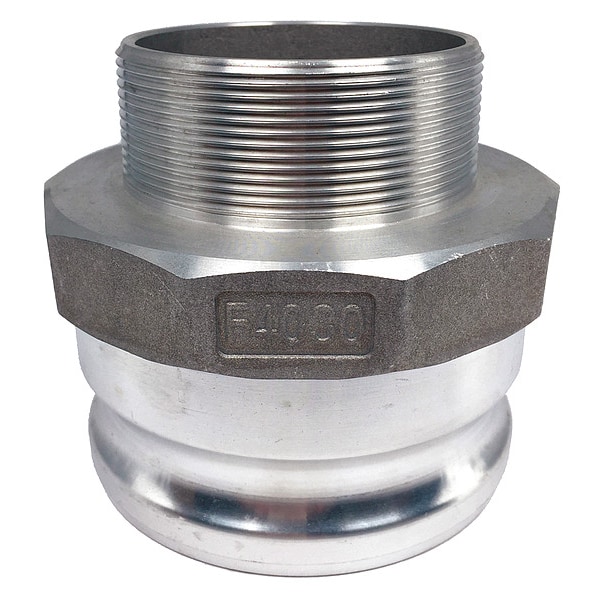 Cam and Groove Adapter, Plug, Body Material Aluminum, Type F, Coupling Size 4 in, Male, Connection Type NPT, Hose Fitting Size 4 in, MNPT, Max. Working Pressure @ 70 F 100 psi, Plug Outside Dia. 4 45/64 in, Overall Length 4 23/64 in, Includes Locking Arm No, Thread Size 3 In.-8, Plug Length 2 1/8 in