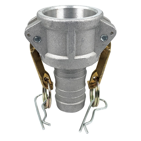 Cam and Groove Coupling, Socket, Body Material Aluminum, Type C, Coupling Size 1 1/4 in, For Hose I.D. 1 1/4 in, Female, Connection Type Hose Shank, Hose Fitting Size 1 1/4 in, Male Hose Shank, Max. Working Pressure @ 70 F 250 psi, Socket Inside Diameter 1 13/16 in, Gasket Material Nitrile, Overall Length 4 in, Includes Locking Arm Yes