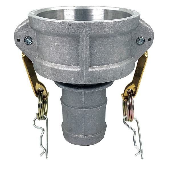Cam and Groove Coupling, Socket, Body Material Aluminum, Type C, Coupling Size 3 in, For Hose I.D. 2 in, Female, Connection Type Hose Shank, Hose Fitting Size 2 in, Male Hose Shank, Max. Working Pressure @ 70 F 125 psi, Socket Inside Diameter 3 5/8 in, Gasket Material Nitrile, Overall Length 5 5/8 in, Includes Locking Arm Yes