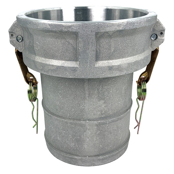 Cam and Groove Coupling, Socket, Body Material Aluminum, Type C, Coupling Size 5 in, For Hose I.D. 5 in, Female, Connection Type Hose Shank, Hose Fitting Size 5 in, Male Hose Shank, Max. Working Pressure @ 70 F 75 psi, Socket Inside Diameter 5 3/4 in, Gasket Material Nitrile, Overall Length 7 7/16 in, Includes Locking Arm Yes