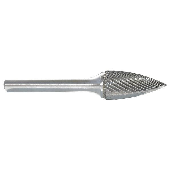 Carbide Bur, End Type Pointed, Cut Type Single, Shank Dia. 1/4 in, Head Dia. 3/4 in, Head Length 1 1/2 in, Included Angle Not Applicable, Overall Length 3 1/4 in, Trade Number SG-15, Primary Material Application Brass, Bronze, Carbon Steel, Cast Iron, Copper, Stainless Steel, Steel, Titanium, Head Shape Tree, Operating Speed - Maximum 35,000 RPM, List Number 310G, System of Measurement Inch, Coating Bright (Uncoated), Head Material Carbide, Head Material Grade C2 Submicron, Shank Material Steel
