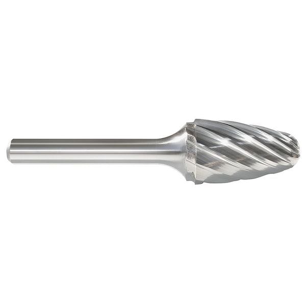 Carbide Bur, End Type Radius, Cut Type Aluminum, Shank Dia. 1/4 in, Head Dia. 3/8 in, Head Length 3/4 in, Included Angle Not Applicable, Overall Length 2 1/2 in, Trade Number SF-3NF, Primary Material Application Zinc, Head Shape Tree, Operating Speed - Maximum 60,000 RPM, List Number 310F, System of Measurement Inch, Coating Bright (Uncoated), Head Material Carbide, Head Material Grade C2 Submicron, Shank Material Steel