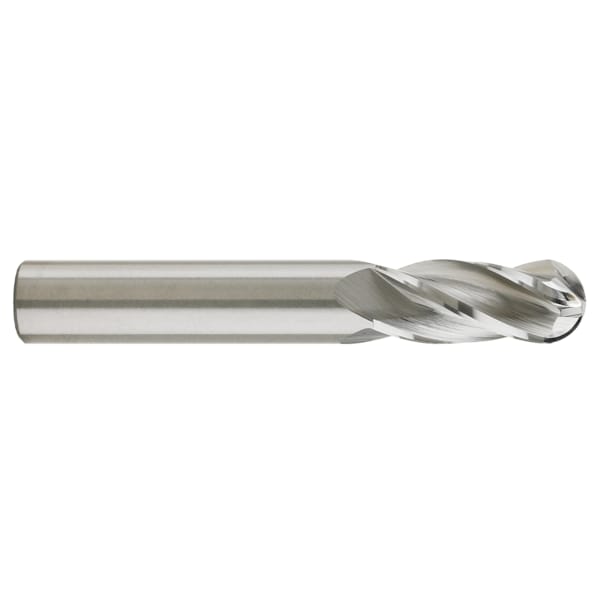 Ball End Mill, 0.078125 in Milling Dia., Carbide, Uncoated, Non-Coolant Through