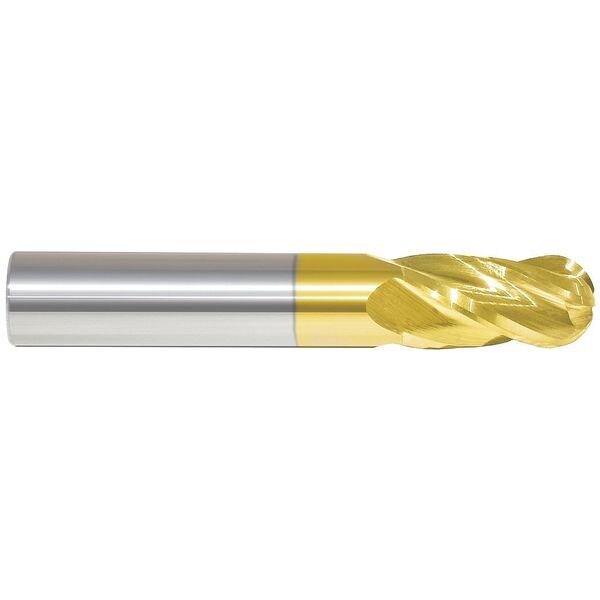 Ball End Mill, 0.0625 in Milling Dia., Carbide, TiN, Non-Coolant Through