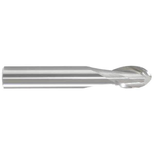 Ball End Mill, 0.375 in Milling Dia., Carbide, Uncoated, Non-Coolant Through