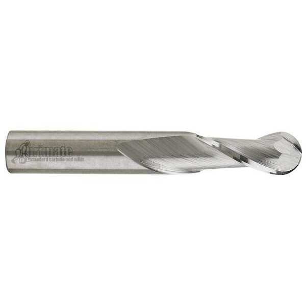 Ball End Mill, 0.5 in Milling Dia., Carbide, Uncoated, Non-Coolant Through