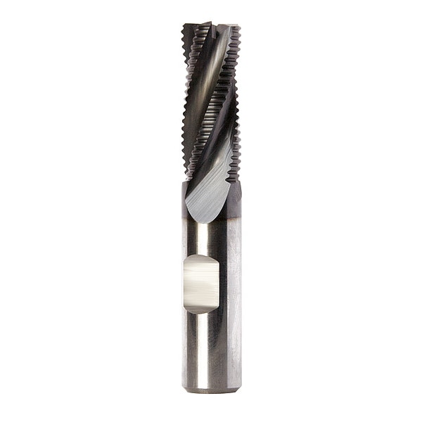 Roughing End Mill, 0.5 in Milling Dia., Carbide, GMS, Weldon Flat, Inch, 45 Degrees , 1 1/4 in