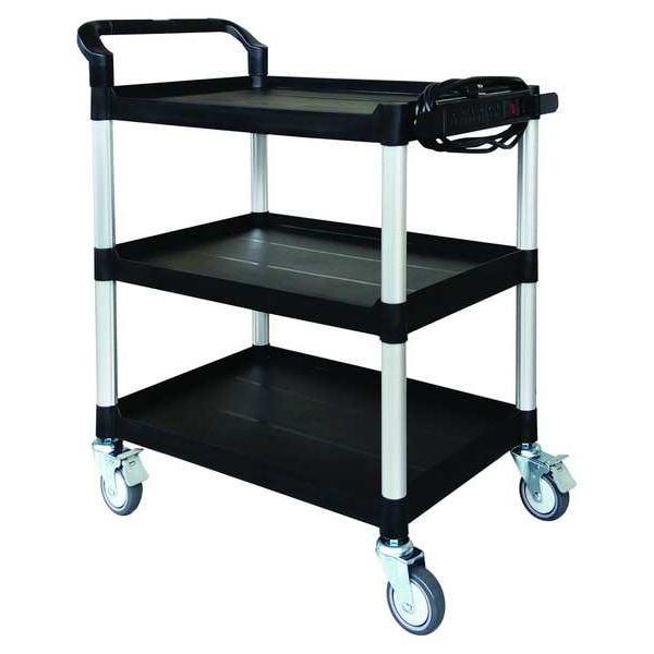Media Cart, Overall Width 19 3/8 in, Overall Length 32 5/8 in, Minimum Overall Height 37 1/4 in, Material Glass Fiber, Polypropylene, Number of Shelves 3, Caster Type (2) Lockable Swivel, (2) Swivel, Weight Capacity 400 lb, Standards Not Applicable, Caster Diameter 4 in, Shelf Weight Capacity 135 lb, Cabinet Depth Not Applicable, Cabinet Height Not Applicable, Cabinet Width Not Applicable, Finish Anodized, Maximum Overall Height 37 1/4 in, Number of Cabinets Not Applicable