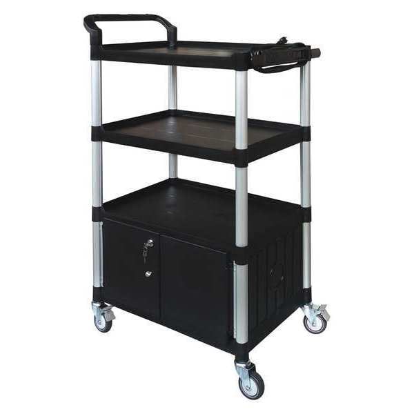 Media Cart with Cabinet, Overall Width 19 3/8 in, Overall Length 32 5/8 in, Minimum Overall Height 52 3/4 in, Material Glass Fiber, Polypropylene, Number of Shelves 4, Caster Type (2) Lockable Swivel, (2) Swivel, Weight Capacity 400 lb, Standards Not Applicable, Caster Diameter 4 in, Shelf Weight Capacity 135 lb, Cabinet Depth 17 1/8 in, Cabinet Height 10 7/8 in, Cabinet Width 26 3/8 in, Finish Anodized, Maximum Overall Height 52 3/4 in, Number of Cabinets 1, Number of Keys 2