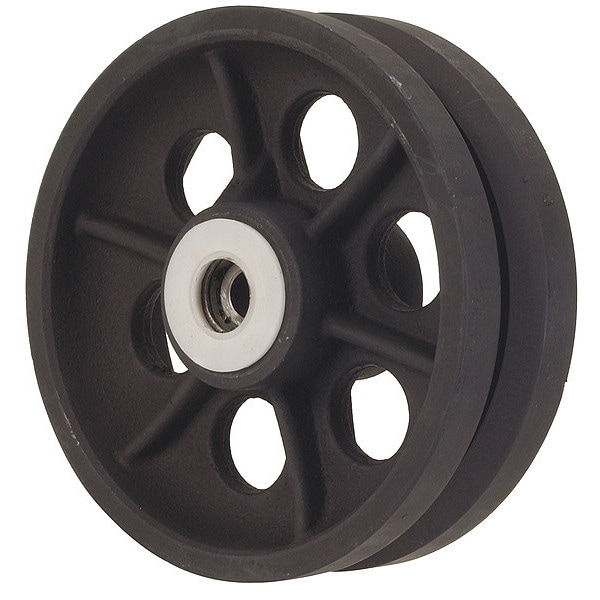 Track Wheel, 1200 lb Load Rating, 1000 to 2999 lb, 6 in Wheel Dia., 2 in Wheel Width, Iron Wheel/Tread Material, Extra Hard Wheel/Tread Hardness Rating, Roller Wheel Bearing Type, V-Groove Tread Shape, For Axle Size 1/2 in, Yes Includes Spanner Bushing, Iron Wheel Core Material, Yes Non-Marking, 2 1/2 in Hub Length