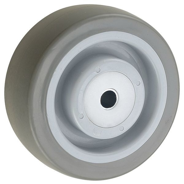 Caster Wheel, 275 lb Load Rating, 0 to 299 lb Load Rating Range, 4 in Wheel Dia., 1 1/2 in Wheel Width, Rubber Wheel/Tread Material, Soft, 75 Shore A, Delrin, Standard Tread Shape, 3/8 in For Axle Size, Included Includes Spanner Bushing, Polypropylene Wheel Core Material, Yes Non-Marking, 1 3/4 in Hub Length