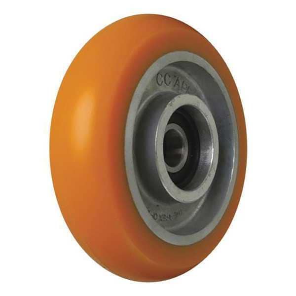 Caster Wheel, 450 lb Load Rating, 300 to 999 lb Load Rating Range, 5 in Wheel Dia., 1 1/4 in Wheel Width, Polyurethane Wheel/Tread Material, Firm, 87 Shore A, Precision Ball, Standard Tread Shape, 3/8 in For Axle Size, Not Included Includes Spanner Bushing, Iron Wheel Core Material, Yes Non-Marking, 1 5/8 in Hub Length