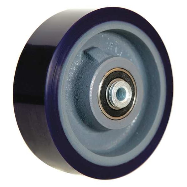 Caster Wheel, 960 lb Load Rating, 300 to 999 lb Load Rating Range, 6 in Wheel Dia., 2 in Wheel Width, Polyurethane Wheel/Tread Material, Firm, 90 Shore A, Precision Ball, Standard Tread Shape, 1/2 in For Axle Size, Not Included Includes Spanner Bushing, Iron Wheel Core Material, Yes Non-Marking, 2 1/4 in Hub Length