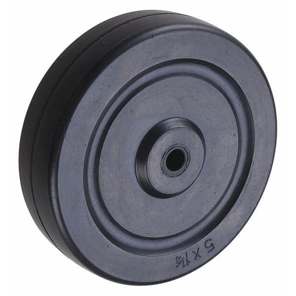 Caster Wheel, 280 lb Load Rating, 0 to 299 lb Load Rating Range, 5 in Wheel Dia., 1 1/4 in Wheel Width, Rubber Wheel/Tread Material, Hard, 70 Shore D, Plain, Standard Tread Shape, 3/8 in For Axle Size, Not Included Includes Spanner Bushing, Rubber Wheel Core Material, No Non-Marking, 1 1/2 in Hub Length