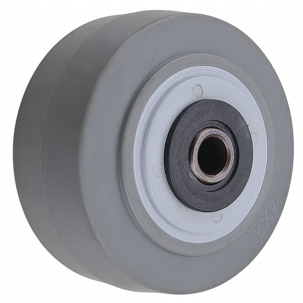 Caster Wheel, 350 lb Load Rating, 300 to 999 lb Load Rating Range, 4 in Wheel Dia., 2 in Wheel Width, Rubber Wheel/Tread Material, Soft, 75 Shore A, Roller, Standard Tread Shape, 1/2 in For Axle Size, Included Includes Spanner Bushing, Polypropylene Wheel Core Material, Yes Non-Marking, 2 15/32 in Hub Length