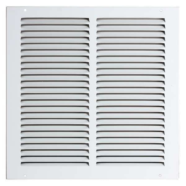 Return Air Grille, Overall Depth 1/4 in, Overall Height 11 3/4 in, Overall Width 11 3/4 in, Maximum Opening Height 10 in, Maximum Opening Width 10 in, Filter Depth Not Applicable, Filter Height Not Applicable, Filter Width Not Applicable, Grille Color White, Grille Material Steel, Material Steel, Damper Material Not Applicable, Bar Spacing 1/2 in, Face Design Louvered, Airflow Directions One-Way, Adjustable Blades No, Mounting Location Ceiling, Wall, Mounting Style Surface Mount