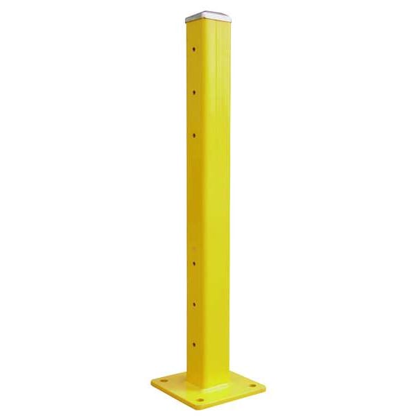 Inline Post, Steel, Guard Rail Levels Double, Guard Rail Mounting Style Bolt On, Yellow, Post Dimensions (W x D) 4 in x 4 in, Mounting Plate Dimensions 10 in x 10 in, Includes Anchors, Bolts, Nuts, Washers, Finish Powder Coated, Mounting Hole Dia. 15/16 in, Number of Mounting Holes 4, Post Height 42 5/8 in