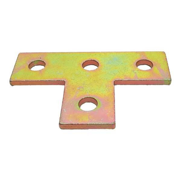 Channel Connecting Plate, Flat Tee, 4 Holes, Width 3 1/2 In, Depth 5 3/8 In, Steel Thickness 1/4 In, Material of Construction Hot Rolled Carbon Steel, Finish Gold Galvanized, Color Gold