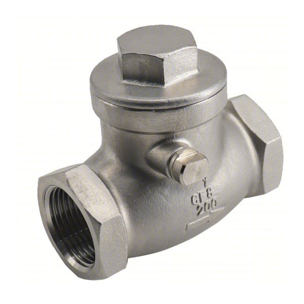 Item - Check Valves Check Valve, Flow Design Single, Mechanism and Body Design Inline Disc, Body Material - Valves 316 Stainless Steel, Pipe or Tube Size 1/2 in, Connection Type FNPT x FNPT, Cracking Pressure 0.363 psi, Mounting Orientation Horizontal, Seal Material PTFE/PTFE+15 Percent Glass Fiber/PTFE+ 25 PercentCarbon/TFM1600, Max. Temp. - Valves 356 Degrees F, Min. Temp. - Valves -20 Degrees F, Max. Water Pressure - Valves 200 psi, Max. Steam Pressure - Valves 130 psi WSP, Seat Material PTFE