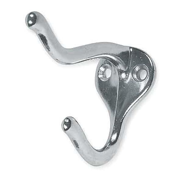 Double Point Hook, Fastening Method Screw Mount, Points per Hook 2, Number of Hooks 1, Basic Hook Material Zinc, Hook Finish Unfinished, Hook Height 2 3/4 in, Hook Base Width 1 3/4 in, Projection 3 in, Silver, Thread Size Not Applicable, Weight 0.05 lb, Thread Length Not Applicable, Includes Screws, Hardware Included, Overall Length 1-5/64 In.
