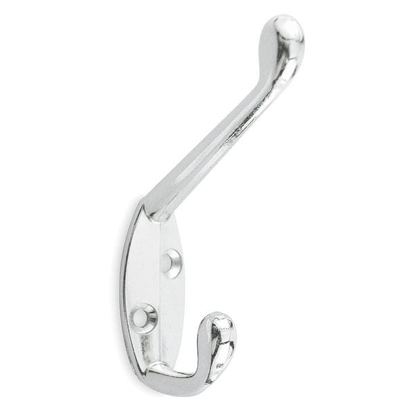 Single Point Hook, Fastening Method Screw Mount, Points per Hook 2, Number of Hooks 2, Basic Hook Material Steel, Hook Finish Zinc Plated, Working Load Limit 20 lb, Hook Height 2 in, Hook Base Width 2 in, Projection 2 1/4 in, Silver, Thread Size Not Applicable, Weight 0.08 lb, Thread Length Not Applicable, Includes Screws