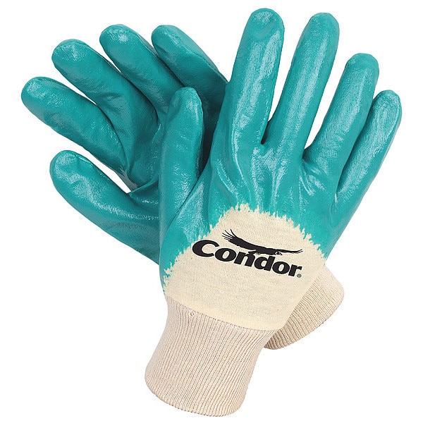 Coated Gloves, Nitrile, Smooth, Palm, 4 Abrasion Level, White/Green, S 1 PR