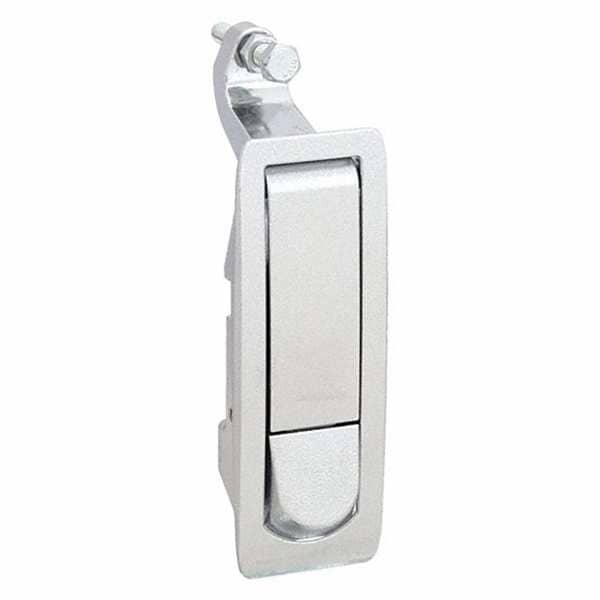 Door Latch, Compression, Push, Adjustable No, Non-locking, Catch/Latch Material Steel, Catch/Latch Finish Textured Chrome, Catch/Latch Height 4 9/32 in, Catch/Latch Width 1 11/32 in, Catch/Latch Depth 1 3/8 in, Grip 15/16 in, Includes Bracket, M5 Screw and Lockwasher, Outer Panel Thickness 3/16 in, Panel Opening Length 1 in, Panel Opening Width 3 3/8 in